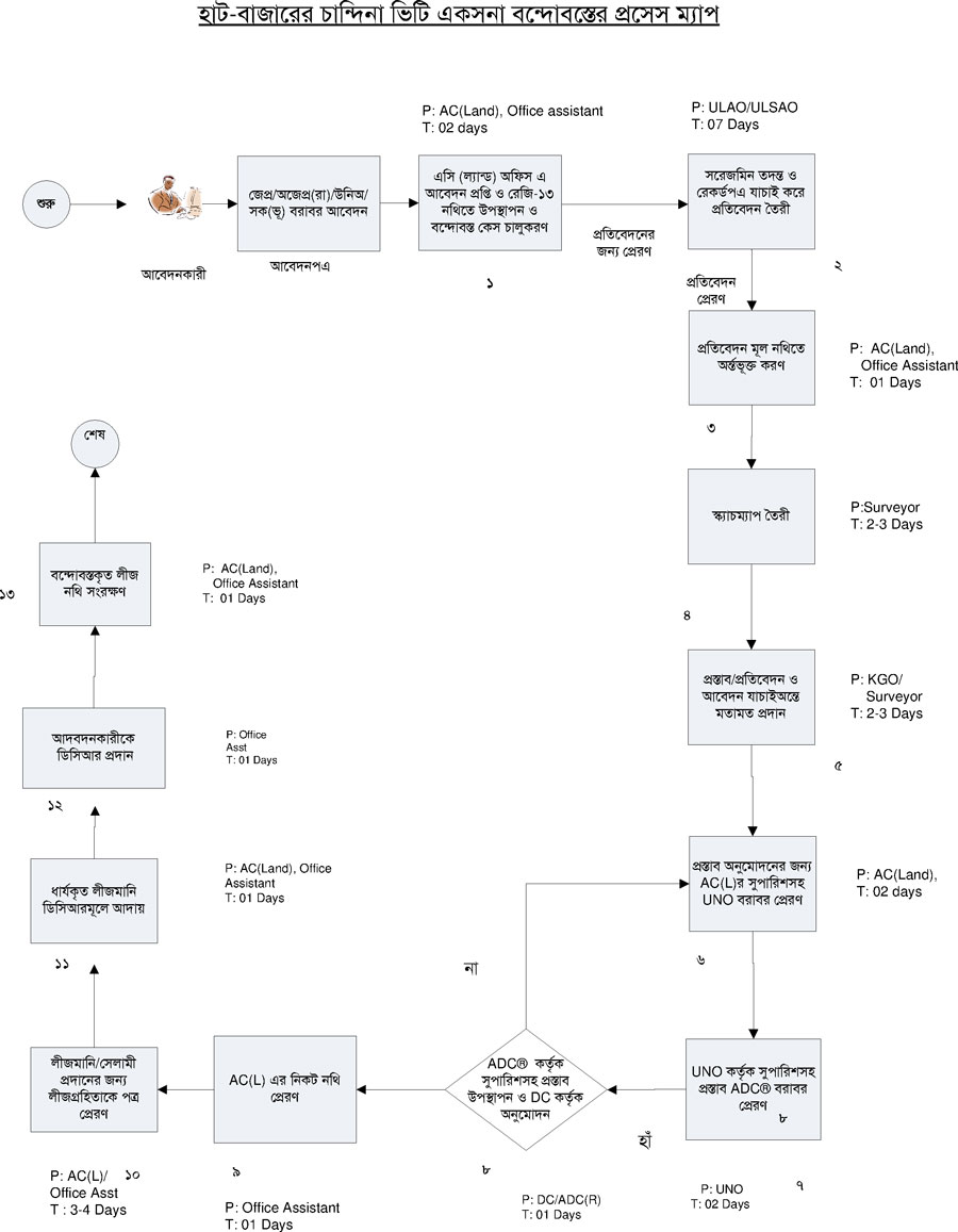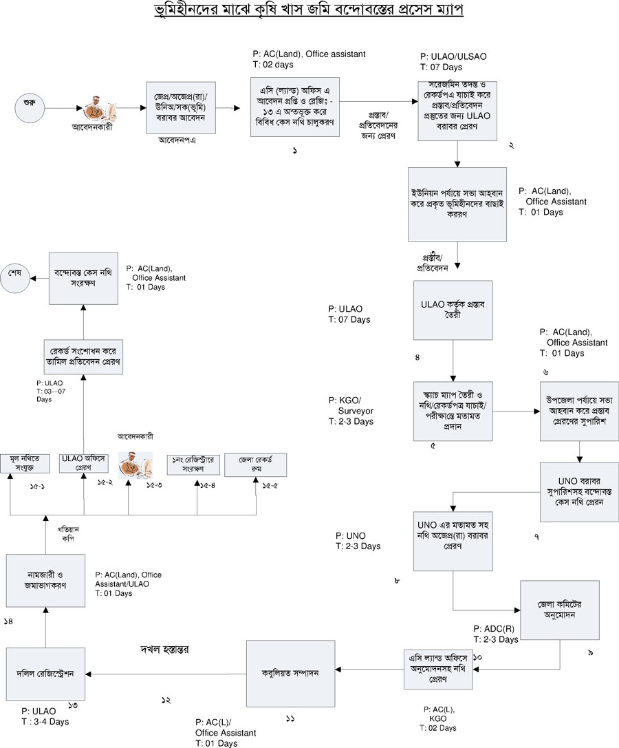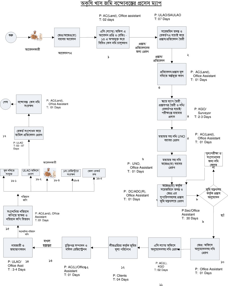 খাস জমি বন্দোবস্তের প্রসেস ম্যাপ